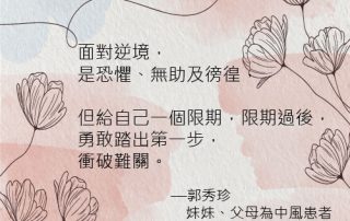 病人的抗病意志堅強是無容質疑,但在身旁默默支持的照顧者,因為照顧患病的親人,犧牲了自己的生活,同樣是十分偉大。生命同行館至今已經收錄了10個故事,其中有3個故事來自照顧者。在她們當中,我們看到夫妻情、母子情以及姐妹情。她們以愛守護身邊的人,這份精神實在值得我們敬佩。 照顧者的故事重溫: 錢燕群(王太):https://fb.watch/1YbyDax-eN/ 基媽:https://fb.watch/1Ybs0LU3R7/ 郭秀珍:https://fb.watch/1YbwcsPT0p/ #生命同行館 #香港病人組織聯盟 #英國阿斯利康 #HKAPO #azhk [...]