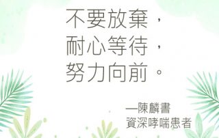 「不要放棄,耐心等待,努力向前」—陳麟書,資深哮喘患者