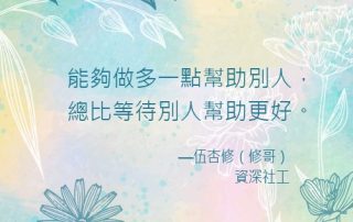 做多一點幫助別人,總比等待別人幫助更好。—伍杏修(修哥)
