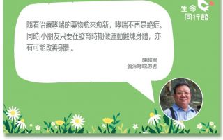 5月5日是世界關懷哮喘日。哮喘其實是一種常見的疾病,根據世衞的統計,全球約有3.39億人患有哮喘。今年的哮喘日,香港哮喘會編印了一本 #哮喘日記簿,鼓勵患者培養自我監察、記錄病情的習慣,從而有效管理病情。 哮喘患者只要配合適當的藥物治療及運動鍛煉,也能正常地生活。生活同行館其中一位故事主角陳麟書是一位資深的哮喘患者,自六十年代起患上哮喘,由從前四出尋求偏方到得到適切的治療,過程中他亦領悟出一套保持希望及正面心得。 故事重溫:https://fb.watch/5a6Z3eaHlg/ 查看哮喘日記簿:http://hkasthma.org.hk/.../AsthmaDiary01052021... 資料來源:世界衞生組織:https://www.who.int/news-room/fact-sheets/detail/asthma #生命同行館 #香港病人組織聯盟 #英國阿斯利康 #HKAPO #AZHK #世界關懷哮喘日 香港哮喘會 [...]